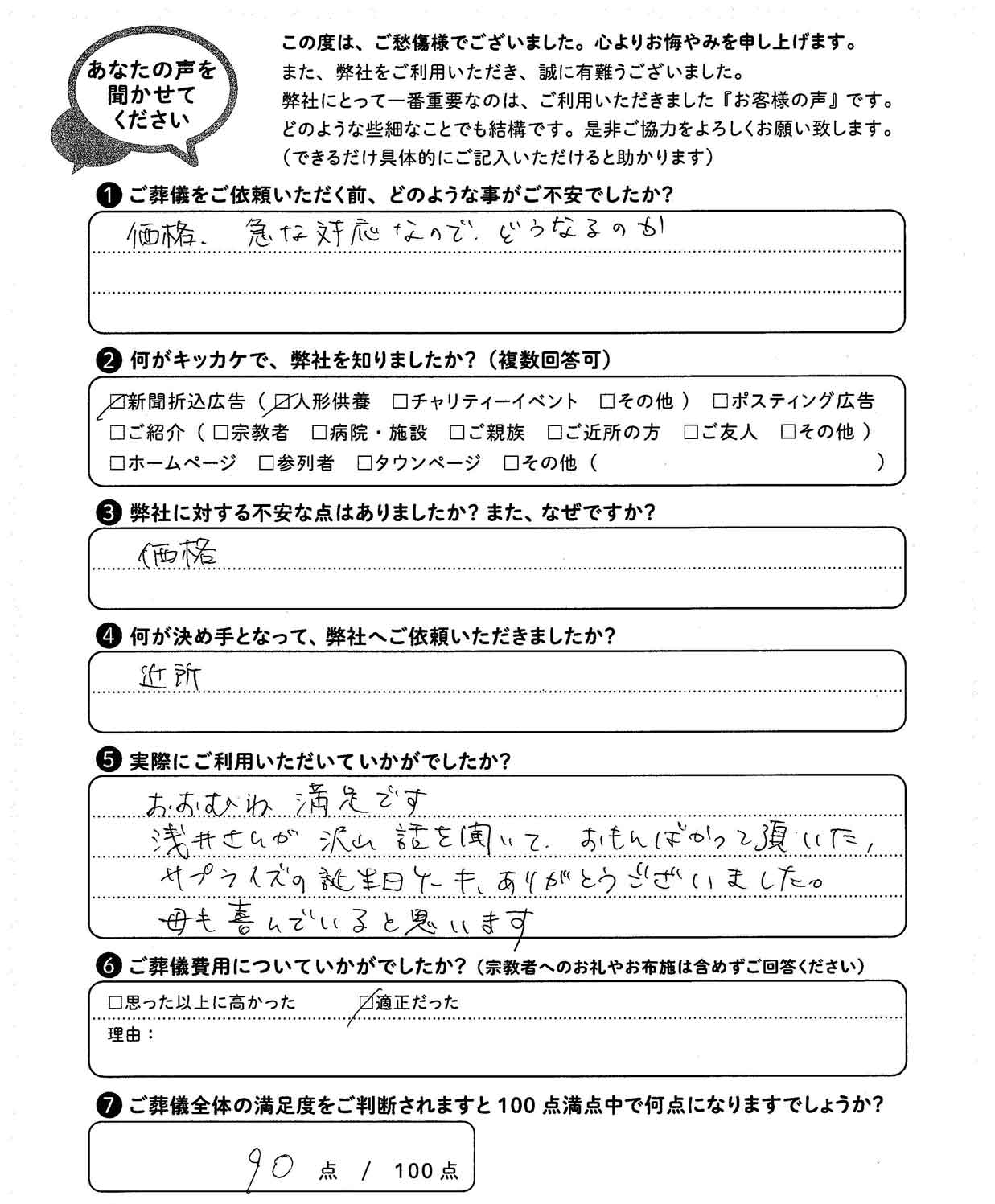 間もなくの忌明け、ご多用の中アンケートにお応えいただき誠にありがとうございます。