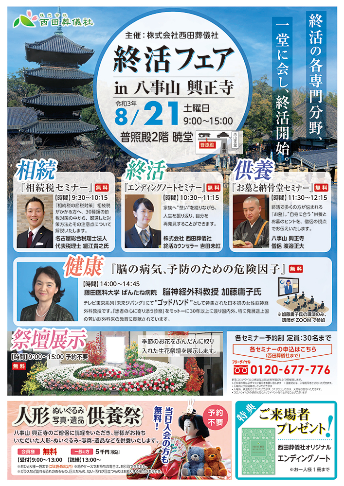 2021/08/10 8月21日に【終活フェア in 八事山興正寺】を開催!