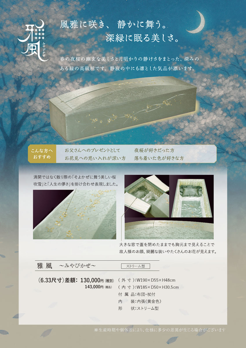 バリエーション多彩な最新のお棺7基 + 入棺体験ができます。